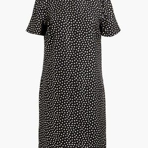 J. Crew Black Short Sleeve Shift Dress in Gold Heart Print Valentines Size 8