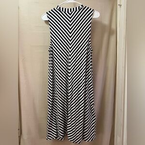 Elegant midi dress with striking striped pattern. Sleeveless design for versatile wear. Normal wear and tear as pictured but in great shape. Size small
