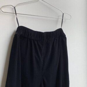 Black velvet pants from brand J. Crew with an elasticated waistband and front pockets. Relaxed fit. Not skinny, not baggy. New without tag. Please see measurement below.