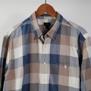 J. Crew Blue, Tan And Cream Large Check Long Sleeve Button Front Shirt
