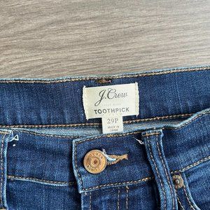 J Crew Blue "Toothpick" Mid-Rise Cropped Skinny Jeans. In excellent condition with no visible flaws or defects (tears, stains, damage, pilling). Great for casual wear. Great closet staple & perfect for transitioning seasons!