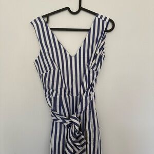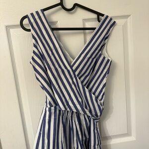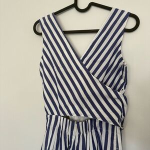 J. Crew Blue and White Striped Wrap Jumpsuit
