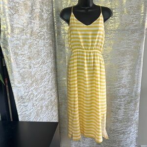J. Crew Carrie 100% Silk Sleeveless In Yellow & White Midi Dress Size 2