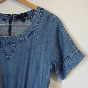 J. Crew Chambray Denim Dress Blue Preppy Tencel Short Sleeve Mini Size Small