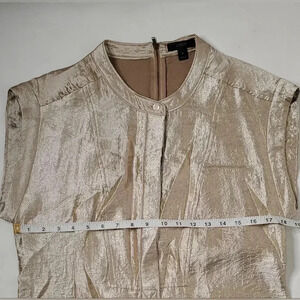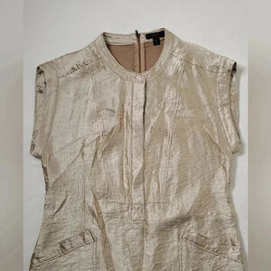 J. Crew Champagne Gold Metallic Stealth High & Low hem Shirt dress Sz 8