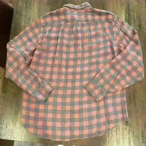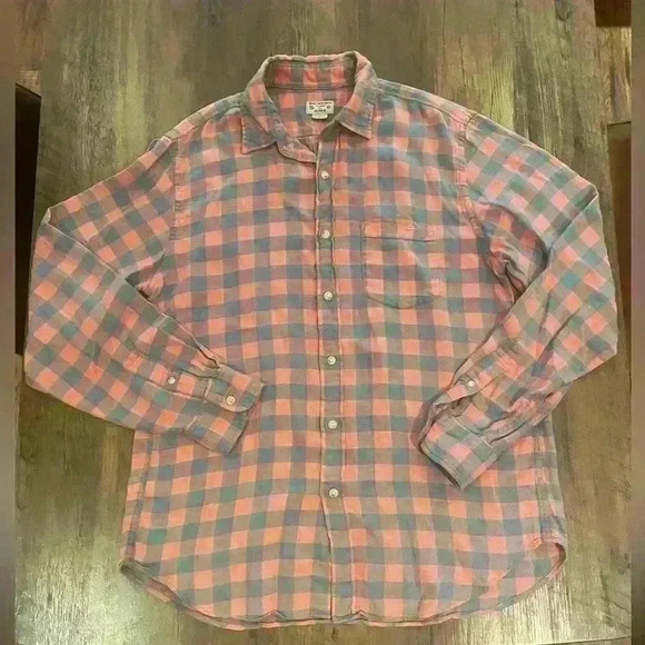 J Crew pink and grey plaid button down casual shirt with collar in excellent like new condition. 100% cotton.