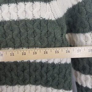 J Crew Chunky Cable Knit Sweater Women's S Merino Wool Green White Striped