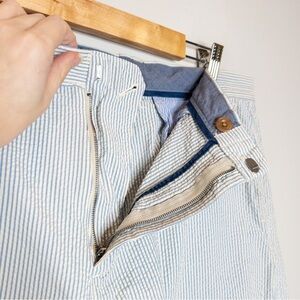 J Crew Club Mens Blue White Stripe Seersucker Shorts Size 34 Nautical Preppy
