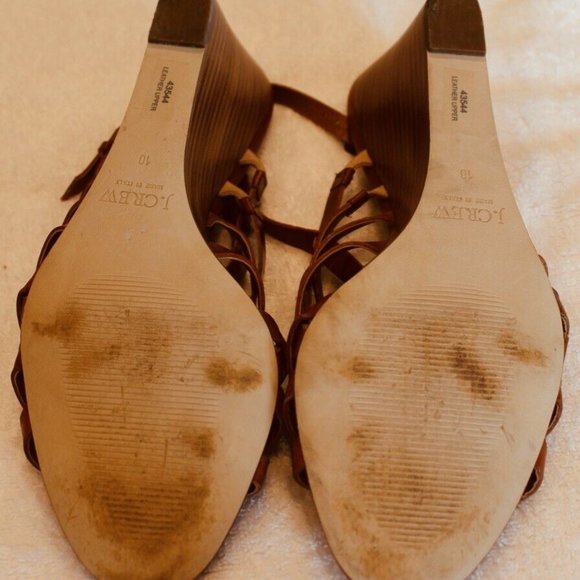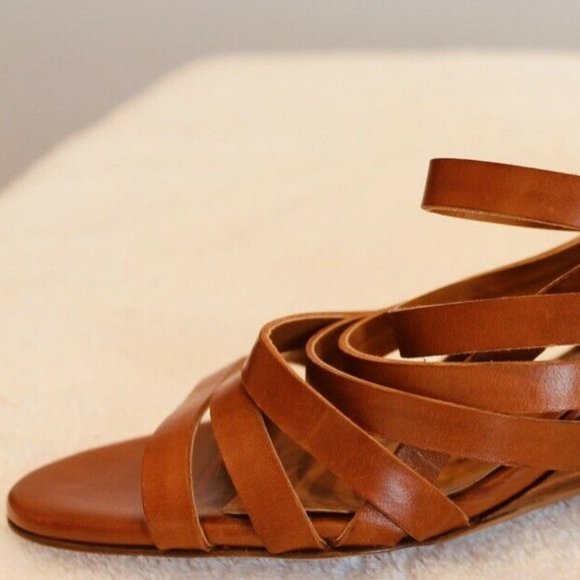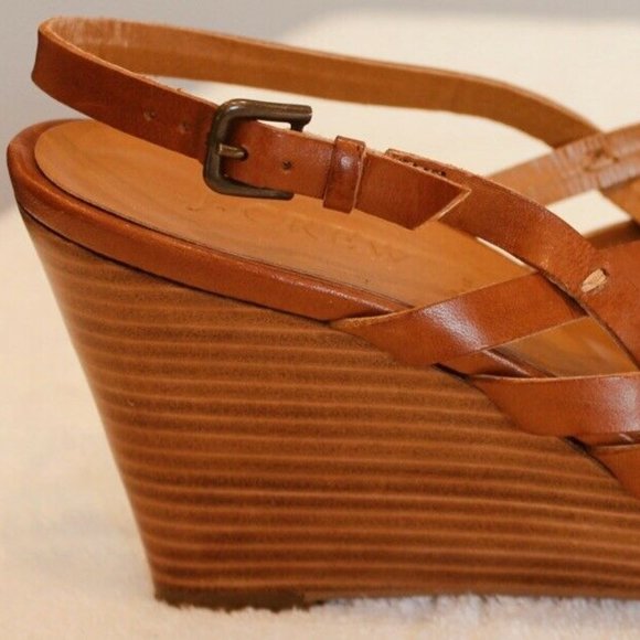 J Crew Cognac Brown Stappy Wedge Heel Sandals