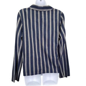 J. Crew Cotton Blend Blouse / Jacket Wrap Around Navy Blue Stripes SZ L