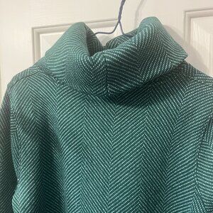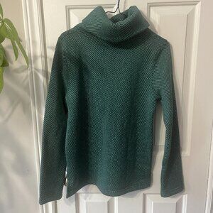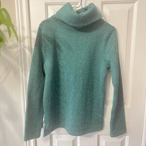 J. Crew Cowl Neck Pullover Turtleneck Sweater Green Herringbone Casual Warm Sm