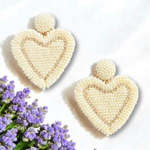 🆕J. Crew Creamy White Pearl Heart Earrings with Crystal Accents