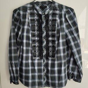 J Crew Embellished Button-Up Shirt in Forest Tartan Glen Plaid Size
