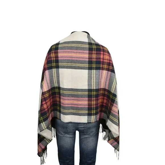 J. Crew Factory Plaid Blanket Scarf Oversized Large Red Cream Blue NWOT