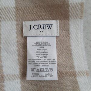Add a cozy layer to any outfit with this classic plaid scarf from J. Crew Factory. This oversized, blanket-style scarf features a timeless cream and tan pattern with a chic fringe detail. It's incredibly soft and warm, making it the perfect accessory for chilly days or to elevate a casual look.