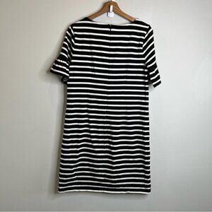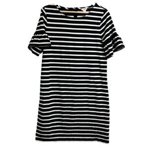 J Crew Factory Womens Size Small Ruffle Sleeve Dress Black White Stripe Shift
