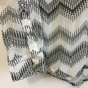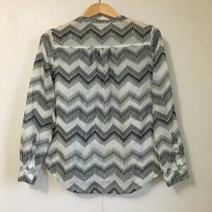 Very good preowned condition zig-zag clip dot popover/pullover top in semi sheer fabric by J. Crew zig zag clip dot pullover top in a semi sheer fabric. A fun addition to any wardrobe and perfect for layering.