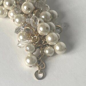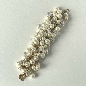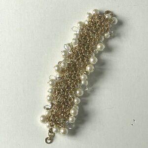 J Crew Faux Pearl Crystal Bracelet Gold Chain Cluster Statement Clasp Wedding