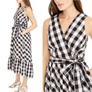 J. Crew Faux Wrap Gingham Poplin Midi Dress NWT