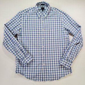 J Crew Flex Shirt Men Large Gray Gingham Slim Fit Stretch Casual Button Down