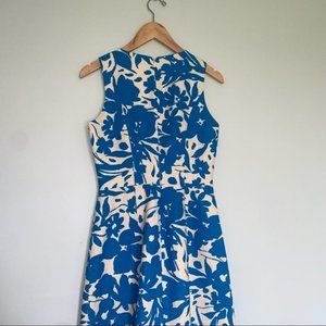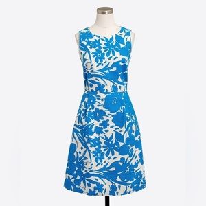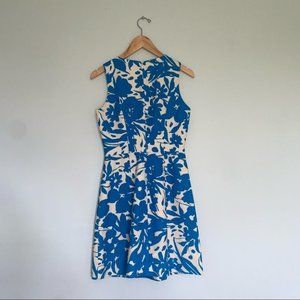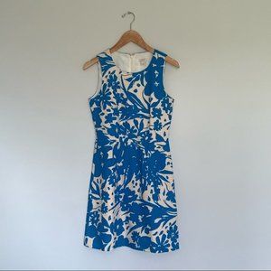 J. Crew Floral Printed Pleated Shift Dress Cotton Blue Beige Women’s Size 0 US
