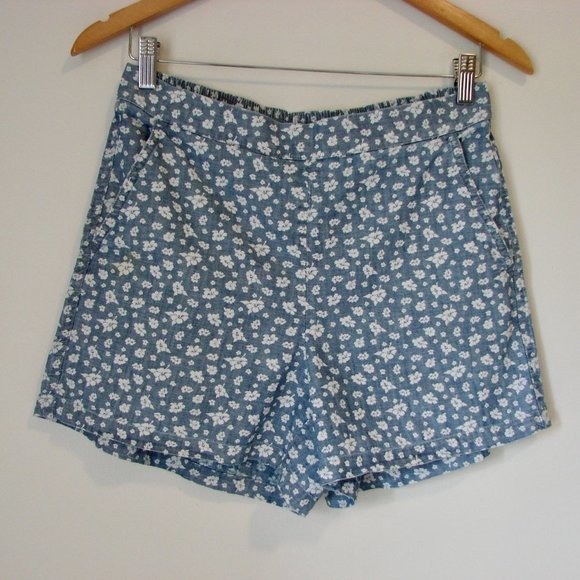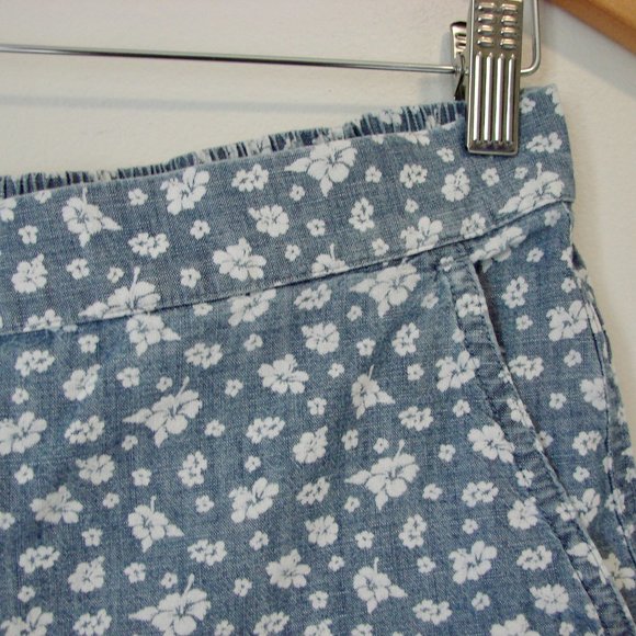 J. Crew Floral Pull On Shorts Blue White Cotton Size Small
