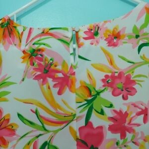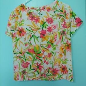 Bright tropical floral blouse