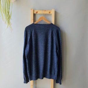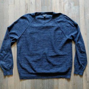Crew neck long sleeve sweater/sweatshirt from J. Crew. Navy blue heather colour, raglan style sleeve, size large, great for casual or work wear. Lightweight "slub" 100% cotton. In excellent condition with no flaws.