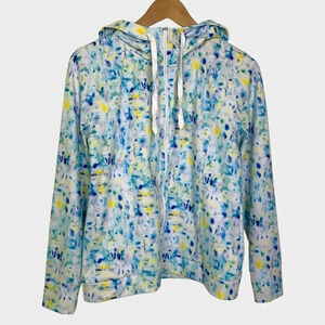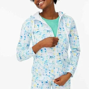 J. Crew Blue Yellow White Full Zip Activewear Hooded Sweatshirt Jacket Sz S