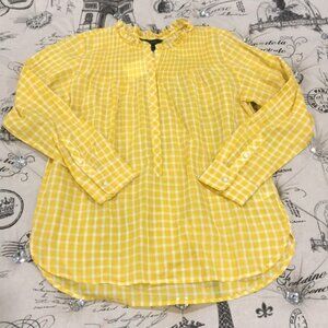 J. Crew Gingham Pleated Ruffle Trim Shirt