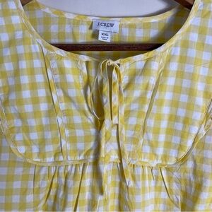 J Crew Gingham flutter top with bib trim yellow white 100% cotton size XXL
