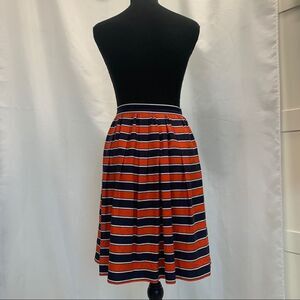 Red, white, and navy blue striped skirt. Pleated. Side zip skirt. Fully lined.