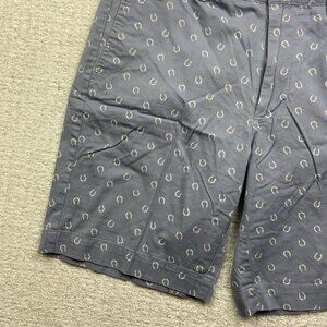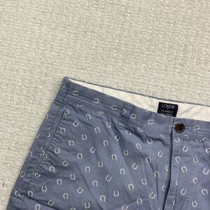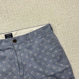 J Crew Gramercy Shorts Mens 33 Horseshoe All Over Print Blue Chino 100% Cotton