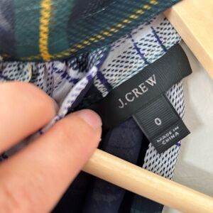 J. Crew High Halter Neck Sleeveless Plaid Tie Back Green and Navy Blue Chic Top