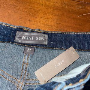 J Crew High Rise Straight Leg Distressed Ripped Ankle Cropped Blue Denim Jeans