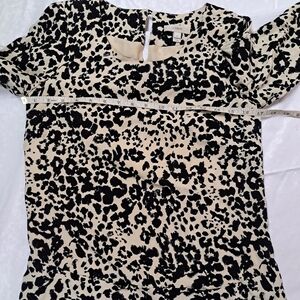 Versatile dress ,Lightweight crepe in ivory and black animal print. Shift shape,