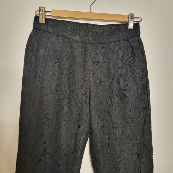 corded lace pant with an elastic waist with scalloped hem and pockets.