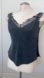 ✮ j. crew black lace trim camisole / tank top. luxurious, soft feel fabric with a slightly structured, flattering fit. features delicate scalloped lace detail on the straps and v-neckline. side zipper closure. so dainty and lacy for a spooky event or evening dinner