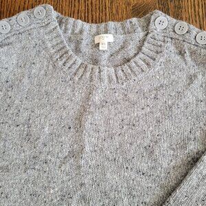J. Crew Lambs Wool Grey Crew Neck Sweater Women's Size XS J. Crew 3 Buttons on each Shoulder 80% Lambs Wool 20% Nylon Grey JCrew Crewneck Sweater