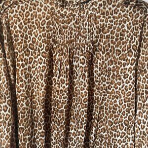 J. Crew Leopard Print Ruffle Neck Blouse Women’s Large Brown Long Sleeve