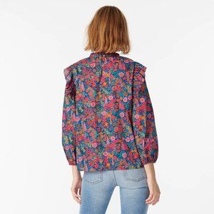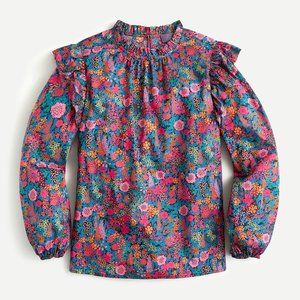 J. Crew Liberty Ciara Ruffleneck Flutter Sleeve Floral Top Pleated AR916 Size XS 0