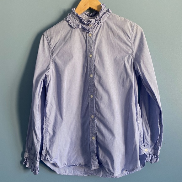 J. Crew Light Blue Ruffled Button-Up Shirt