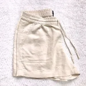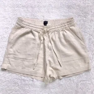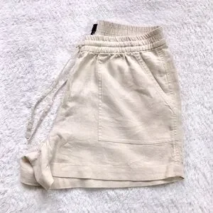 J. Crew cream linen shorts with an elastic waistband and drawstring. Perfect for casual wear.