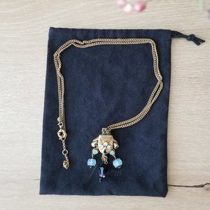 Antique like brass-plated chain with art deco design and rhinestones and resin stones. Preloved in good condition. There is a bit of discoloration around the end of the chain and one of the beads. Doesn’t come with dust bag but will provide a protective bag.