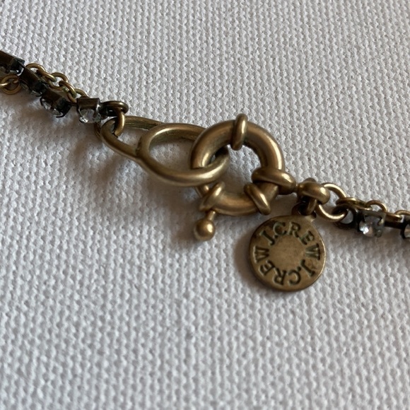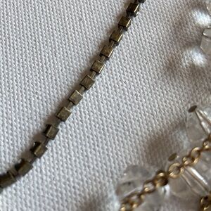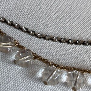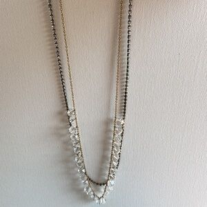 Versatile, long layered necklace from J Crew. Features a dainty, linked rhinestone chain and a gold-toned chain dangling with faceted clear beads.