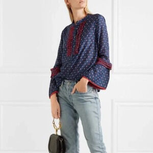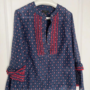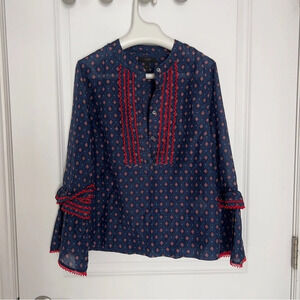 J. Crew Ludwig Embroidered Silk Blend Bell Sleeve Blouse size 6p