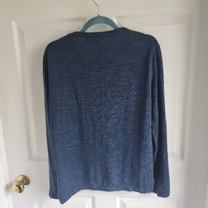 100% Cotton Mens Small Long Sleeve Pullover with Chest Pocket. Nice blue colour. Good Used Condition. Classic and timeless Style.
