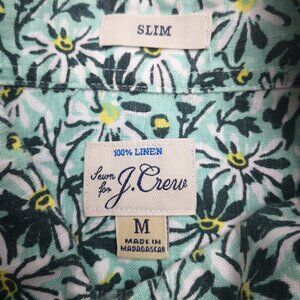 J. Crew Men's Size Medium Slim Fit Green Floral Print 100% Linen Shirt