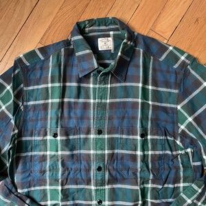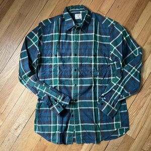 Heavyweight flannel by J.Crew in a blue/green/white plaid, size M. Message me for measurements or any other info.