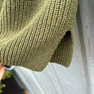 J Crew Mercantile chunky knit cotton sweater. Deep V neck, side slit.